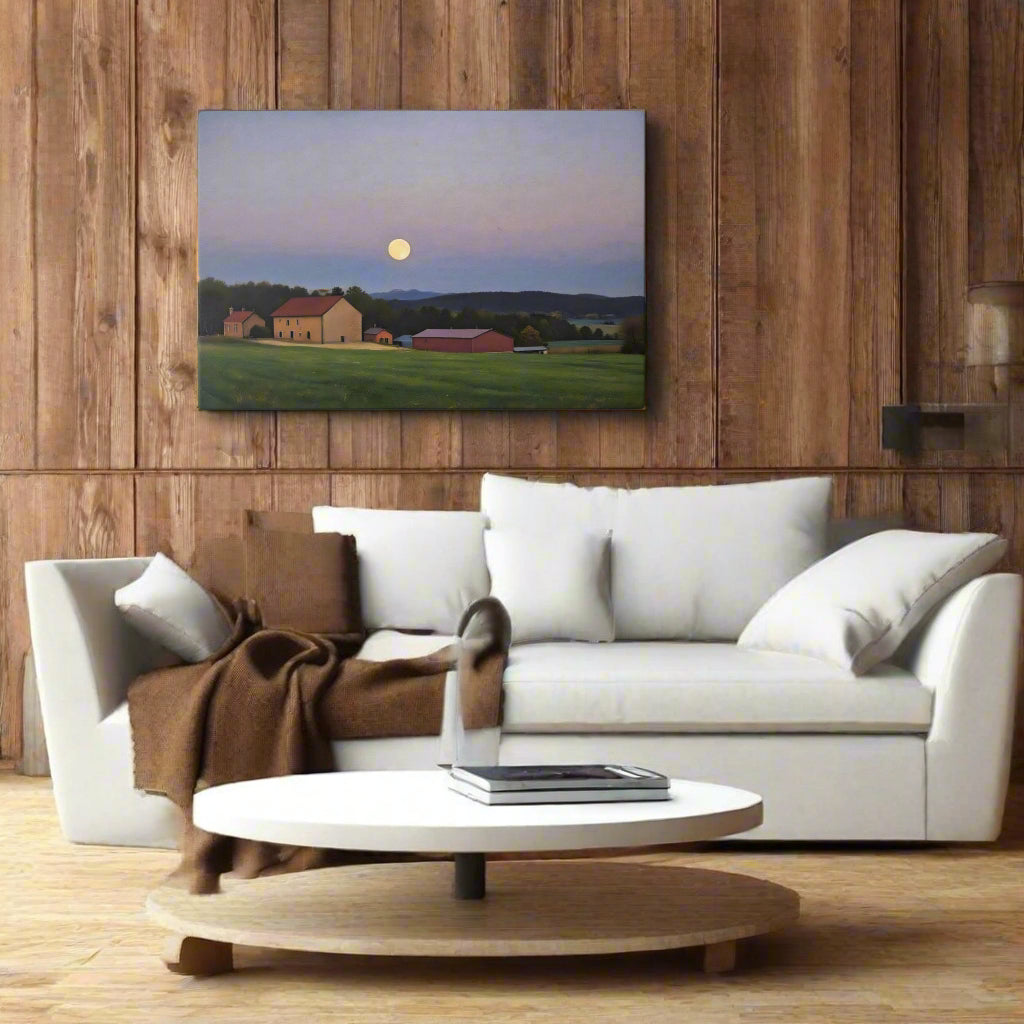 Serene Full Moon Over Farm – Rustic Canvas